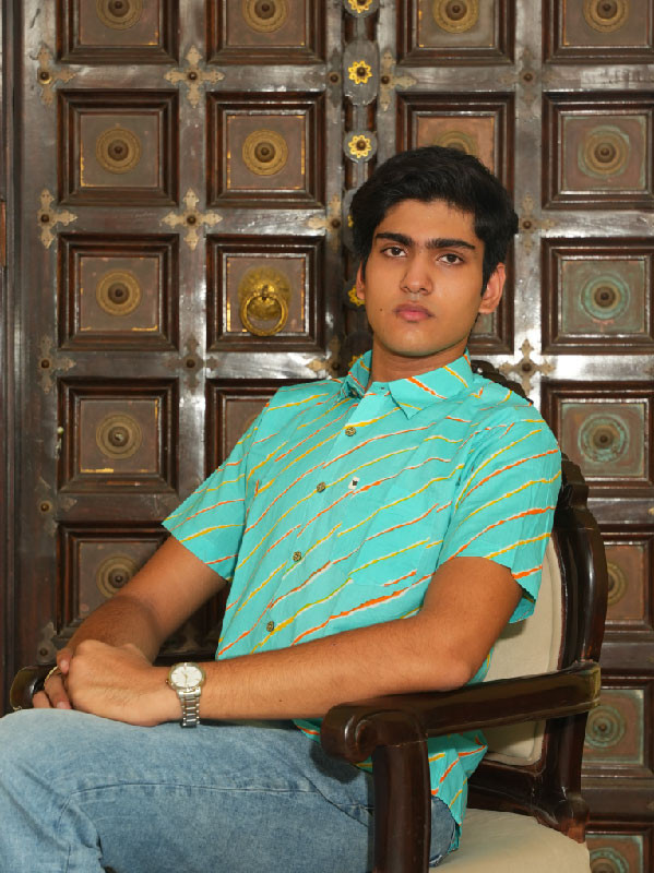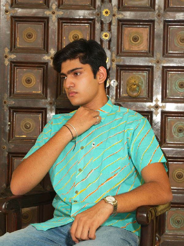 Add a splash of freshness to your wardrobe with the Aqua Breeze Striped Half Sleeve Shirt. Featuring a cool aqua blue base with bold diagonal stripes in yellow, red, and white — this shirt is made for the man who likes to stand out with style.
