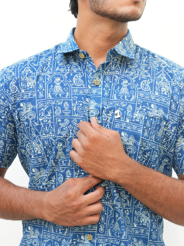 Celebrate culture with confidence in our Indigo Folk Tale Printed Shirt, featuring intricate heritage-inspired prints that narrate timeless Indian artistry. Made with soft, breathable cotton, it ensures all-day comfort with a touch of elegance.