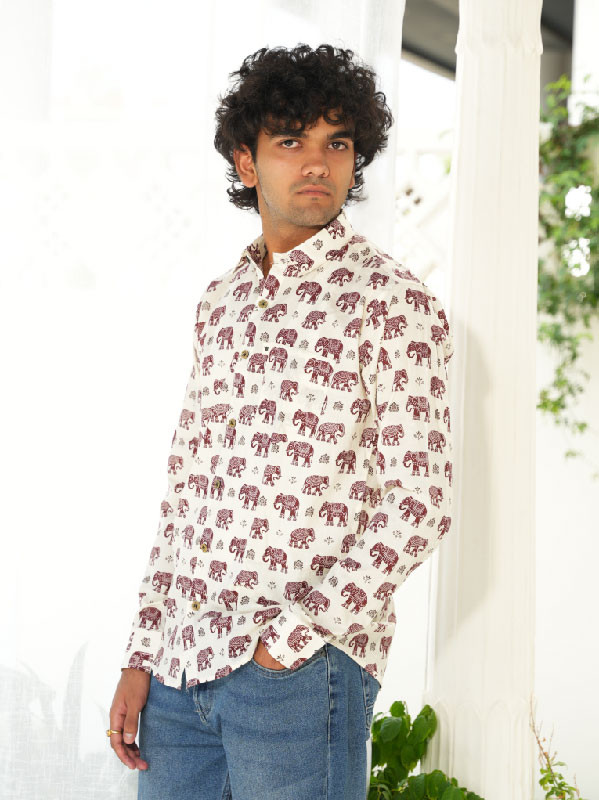 Celebrate Rajasthani heritage with the Hathi Phool Shirt—a full-sleeve men's shirt featuring graceful floral designs paired with majestic elephant motifs. Tailored from soft, breathable fabric, this piece is perfect for festive occasions, cultural gatherings, or simply adding a touch of royal flair to your wardrobe. Make every day feel like a celebration of culture and style.